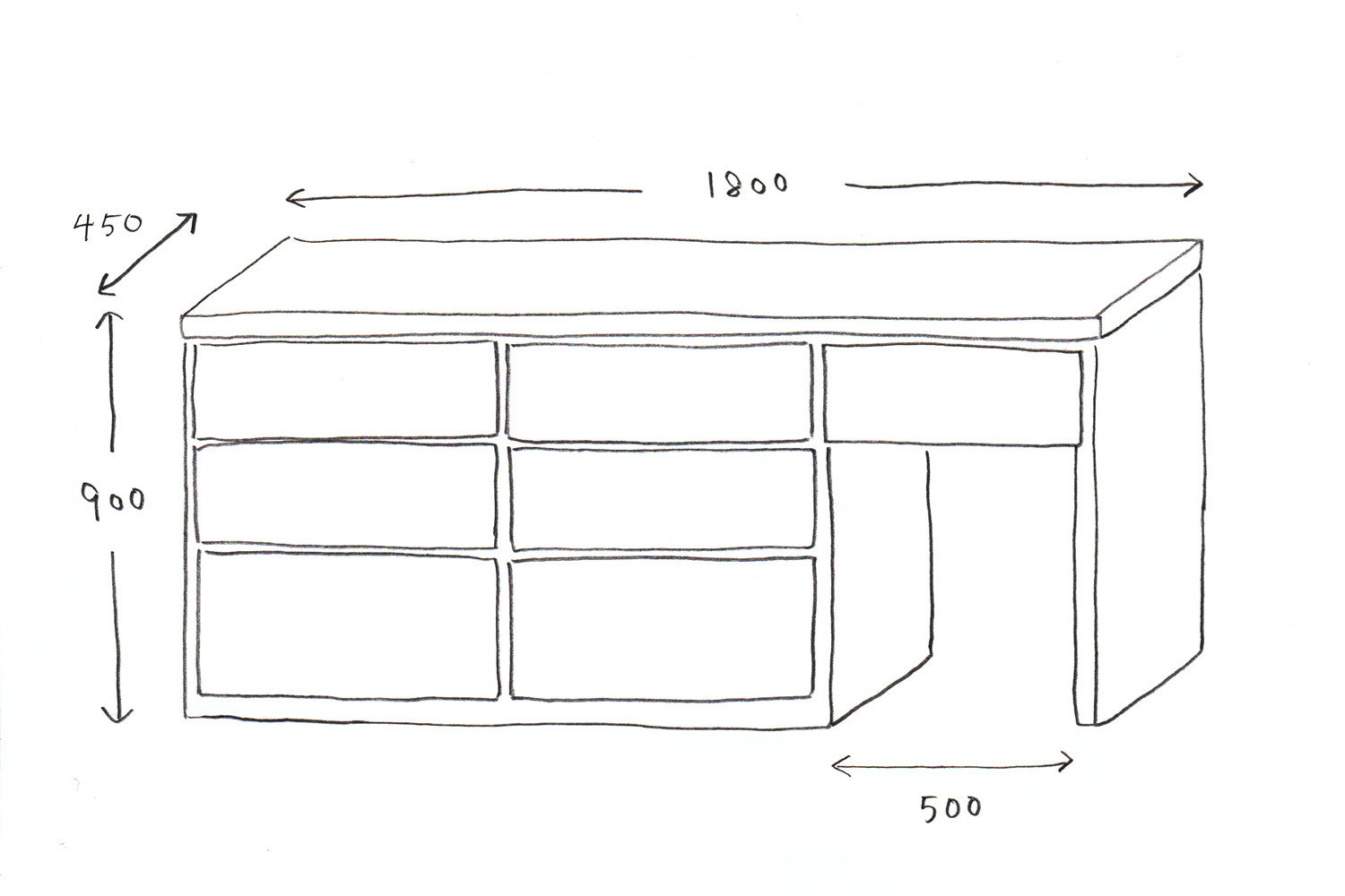 作って欲しい形を描いて頂いて、幅、高さ、奥行きを記載してください。