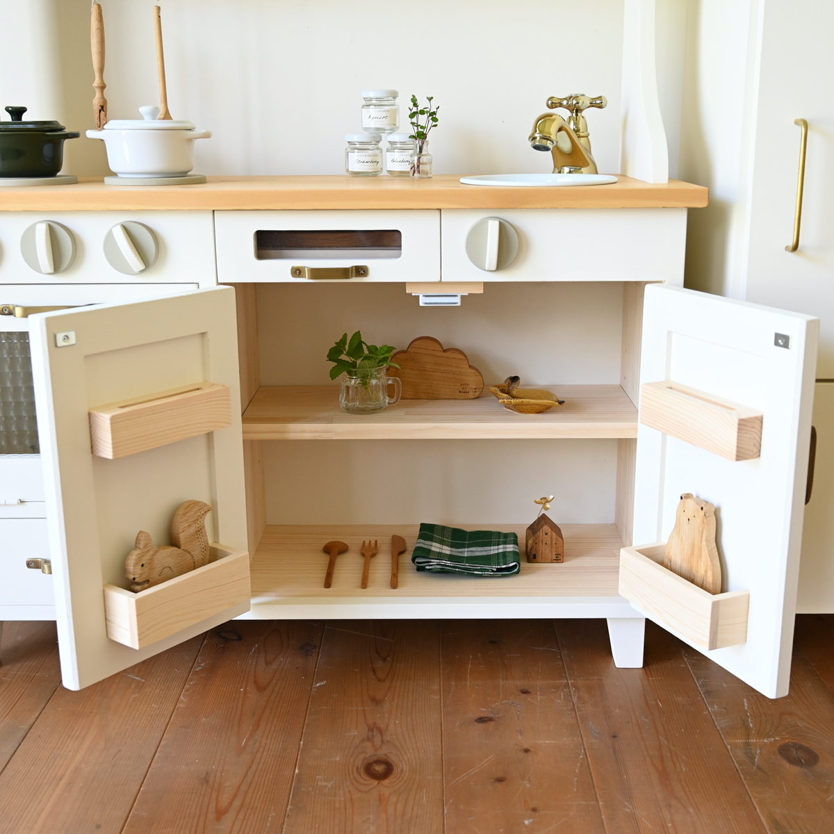サイズはままごとが約W85cm×H92.3cm×D33cmです。