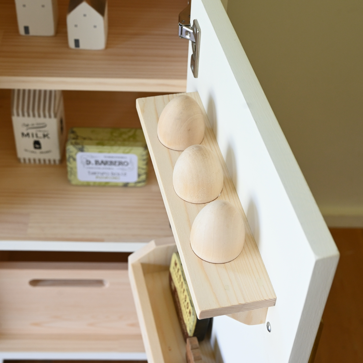 冷蔵庫には卵ポケットをつけております。
