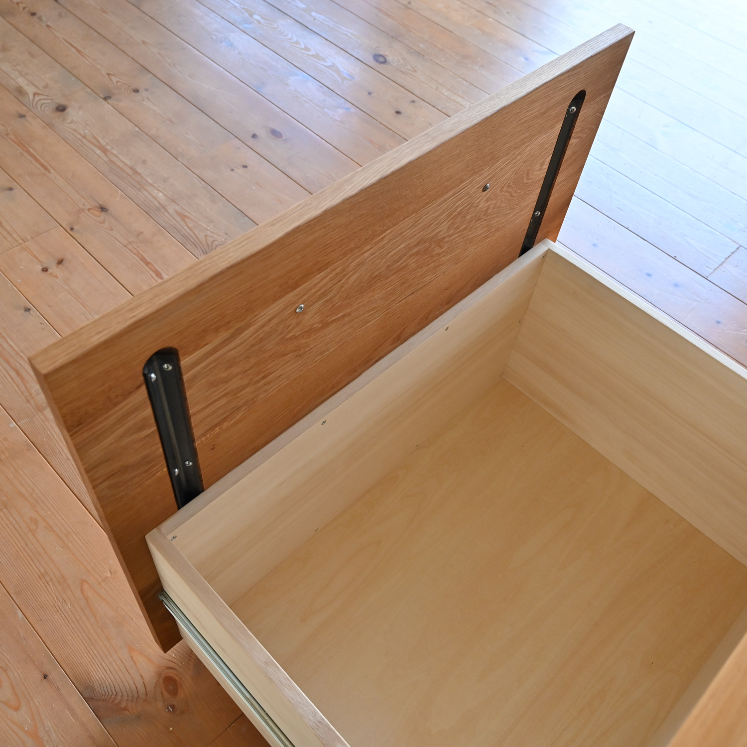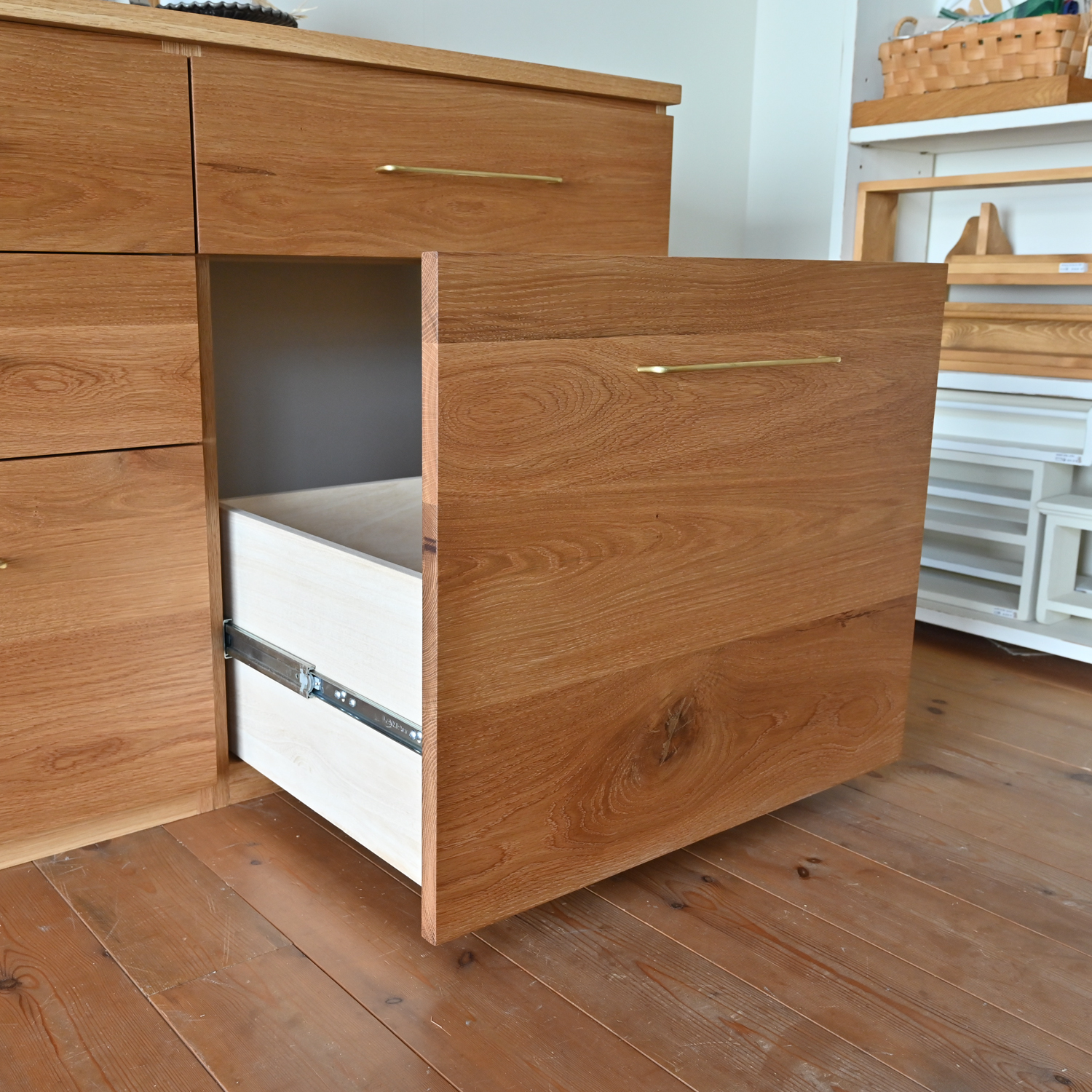 こちらは右下の引き出しの中にゴミ箱が収納できるようになっております。