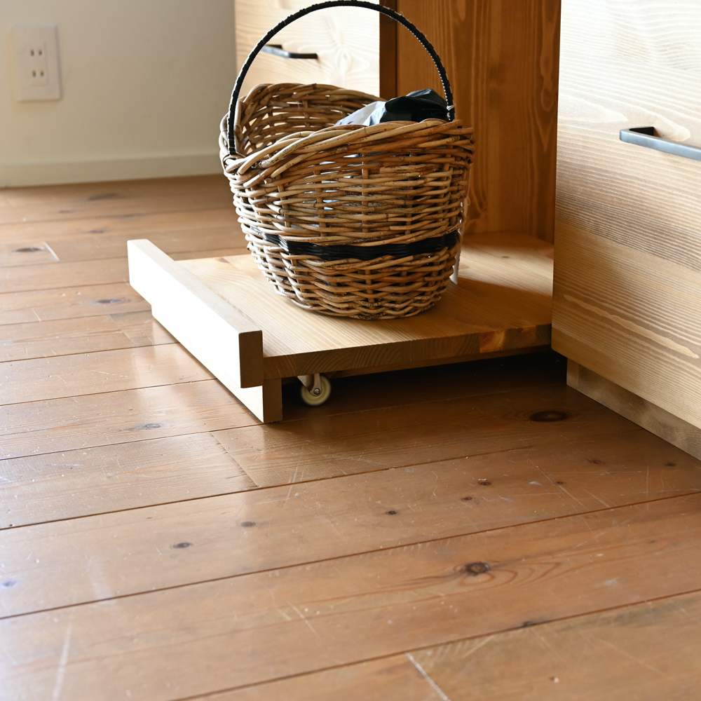 左側はゴミ箱収納の作業台と引き出し。