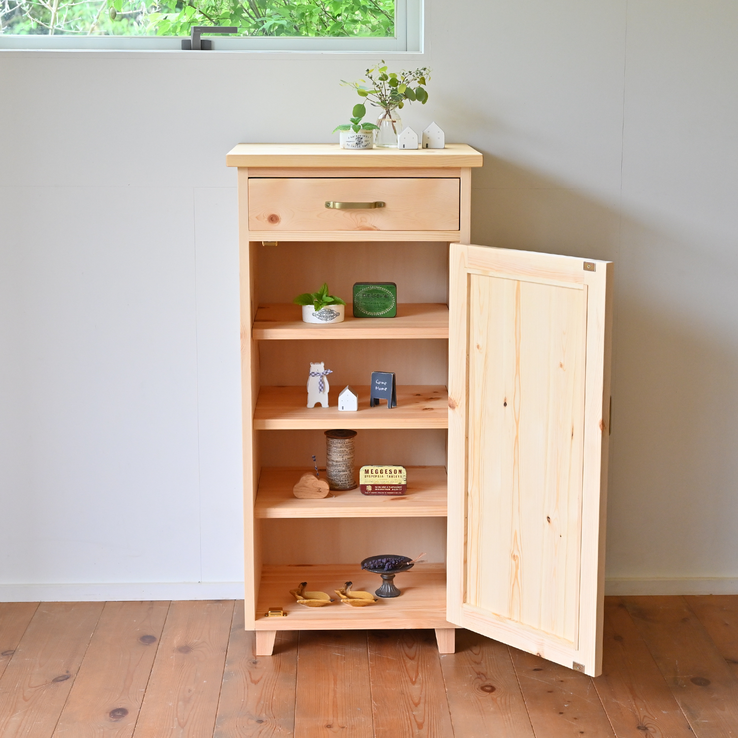 ナチュラルでシンプルな家具です。北欧パインやホワイトオークの無垢材を使って手作りしています。